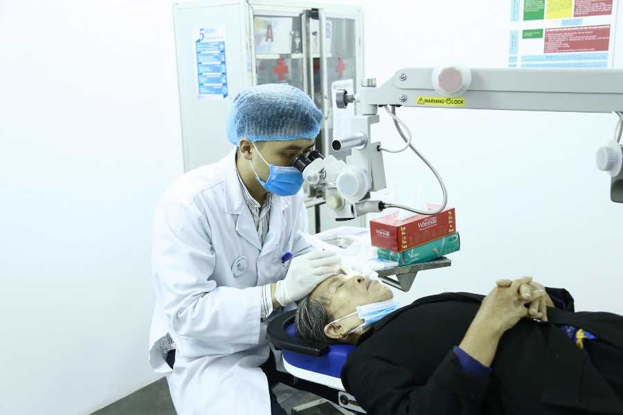 Phẫu thuật thay thủy tinh thể nhân tạo, khôi phục thị lực cho bệnh nhân bị đục thủy tinh thể.