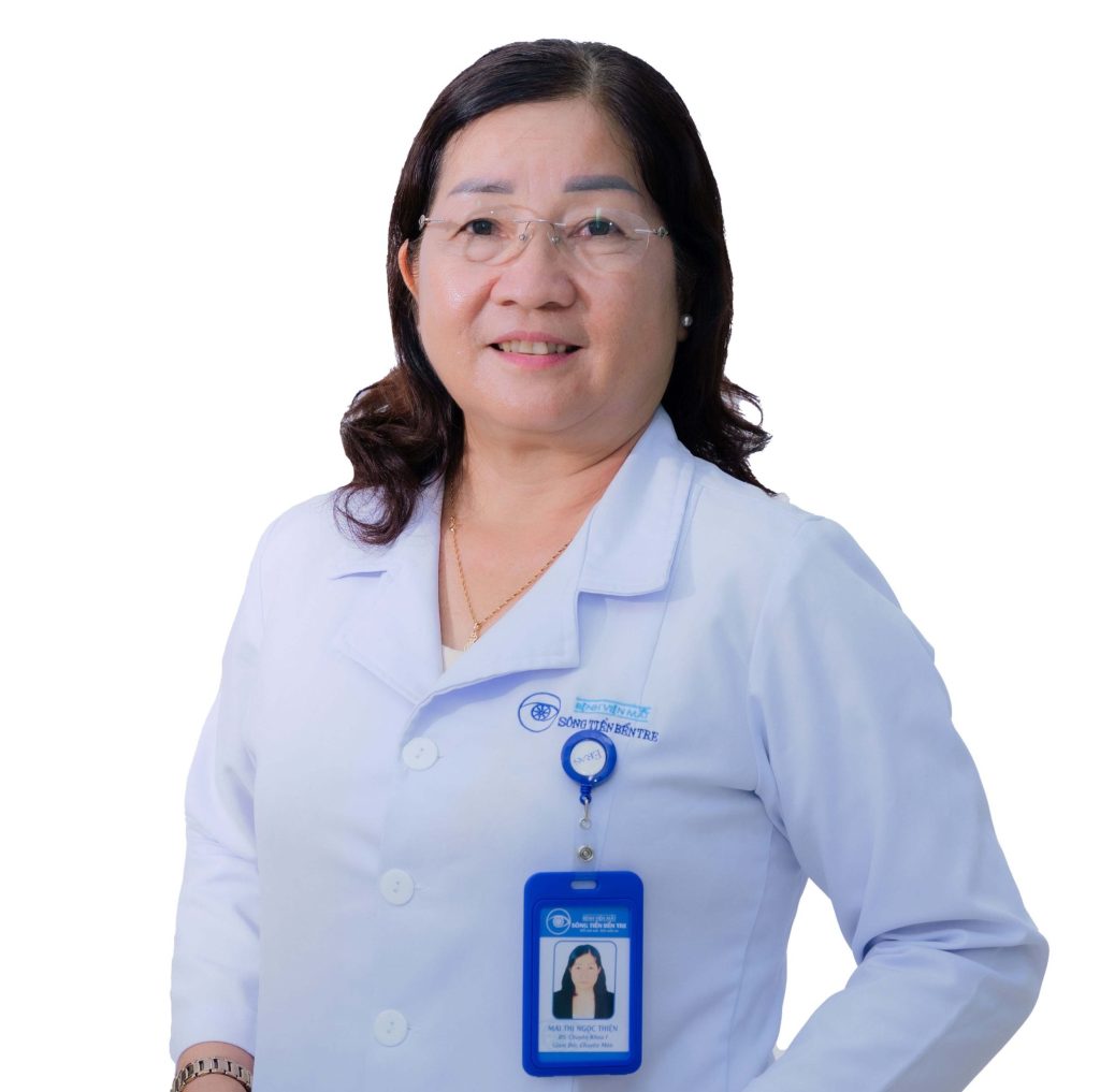 BS.CKI Mai Thị Ngọc Thiện : có gần 20 năm kinh nghiệm trong ngành nhãn khoa với hơn 10.000 ca phẫu thuật đục thủy tinh thể bằng phương pháp Phaco và hơn 5.000 ca phẫu thuật mộng thịt (kéo mây). Sự tận tâm và kỹ năng của bác sĩ Thiện đã giúp cải thiện chất lượng cuộc sống cho nhiều bệnh nhân.