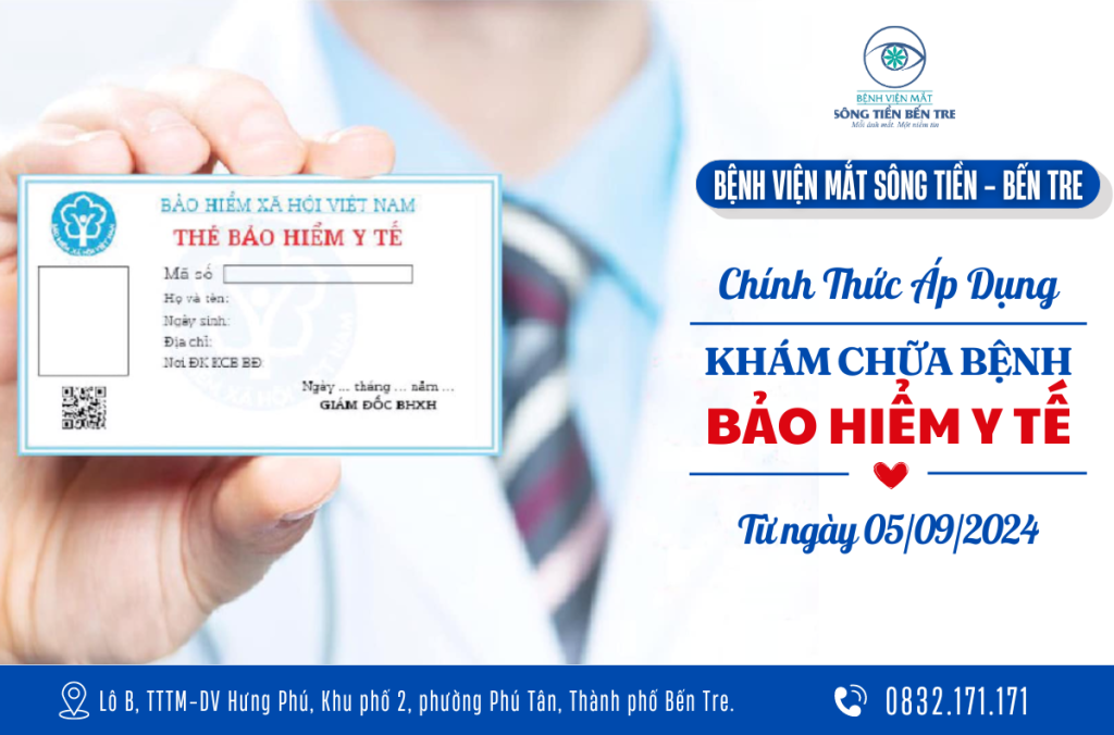 Từ ngày 5/9/2024, Bệnh viện Mắt Sông Tiền – Bến Tre chính thức áp dụng thanh toán BHYT các bệnh lý về mắt cho người dân trên toàn quốc