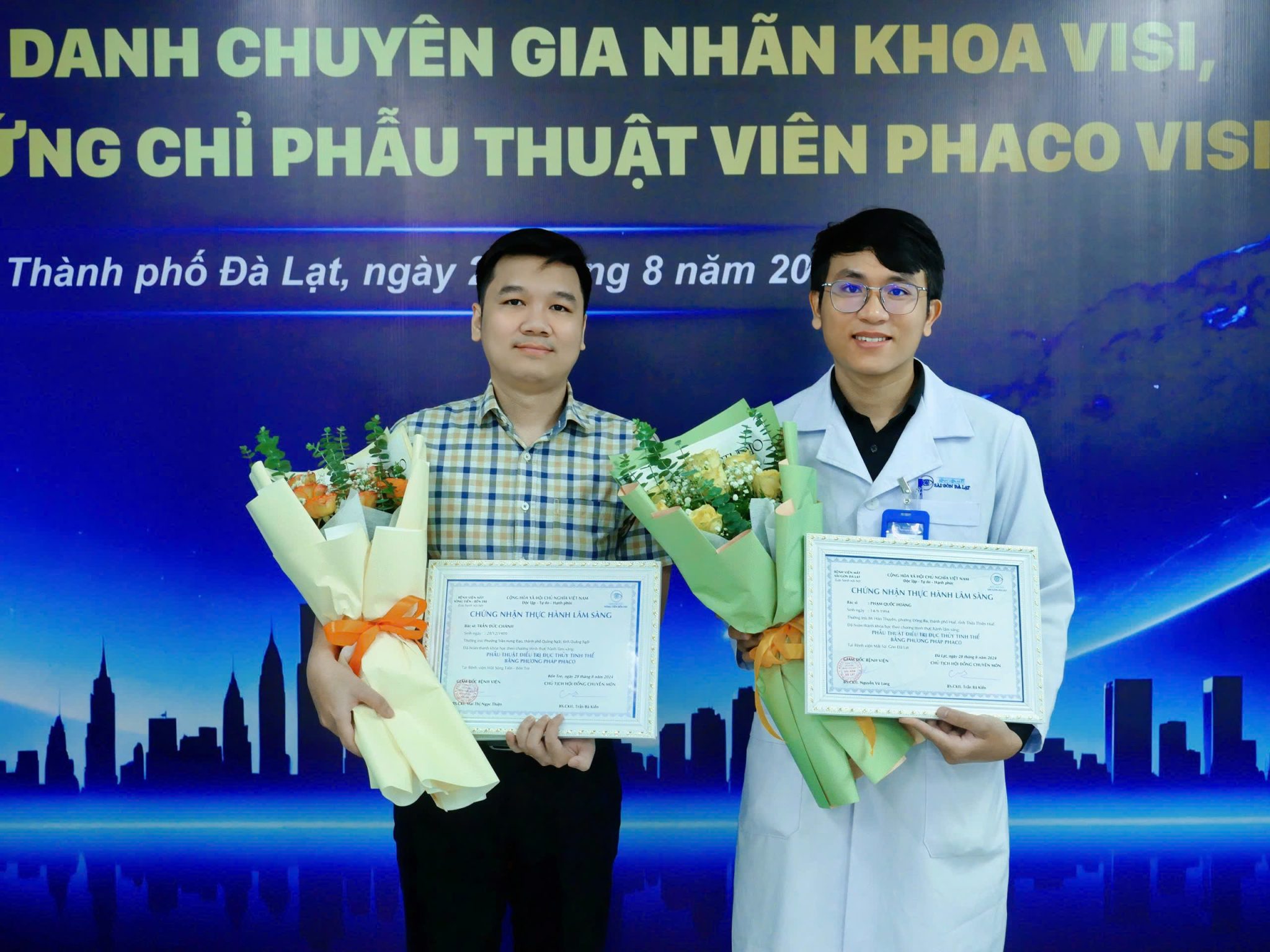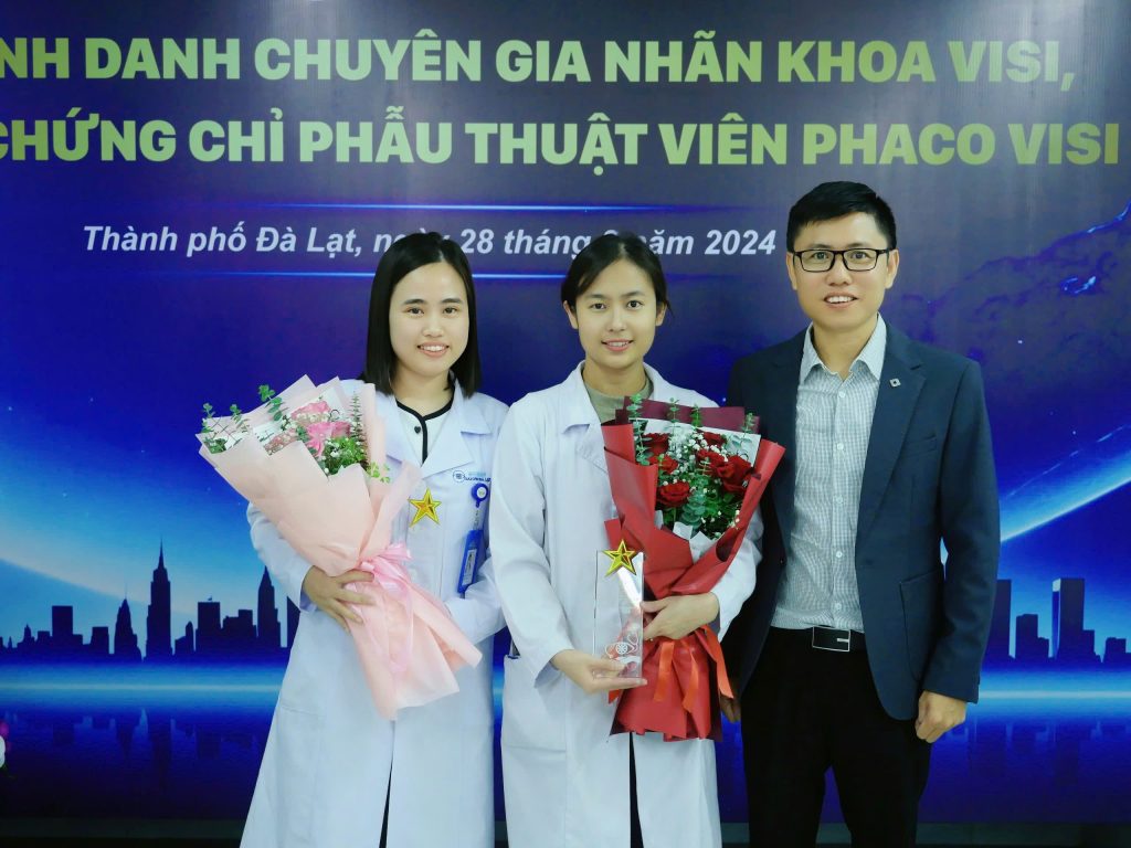 Song song, trong buổi vinh danh, Hội đồng chuyên môn cấp cao của hệ thống VISI còn trao kỷ niệm chương vinh danh cho hai bác sĩ phẫu thuật viên PHACO chuyên nghiệp (đã thực hiện phẫu thuật trên 1,000 ca phẫu thuật Phaco): BS nội trú Trần Thị Khánh Linh – PGĐ bệnh viện Mắt Sài Gòn Đà Lạt và BS nội trú Huỳnh Thị Xuân Thảo. Kết thúc buổi sự kiện là buổi cấp chứng nhận chính thức công nhận bác sĩ phẫu thuật viên PHACO cho BS nội trú Phạm Quốc Hoàng, BS Trịnh Thế Sơn và BS nội trú Trần Đức Chánh.