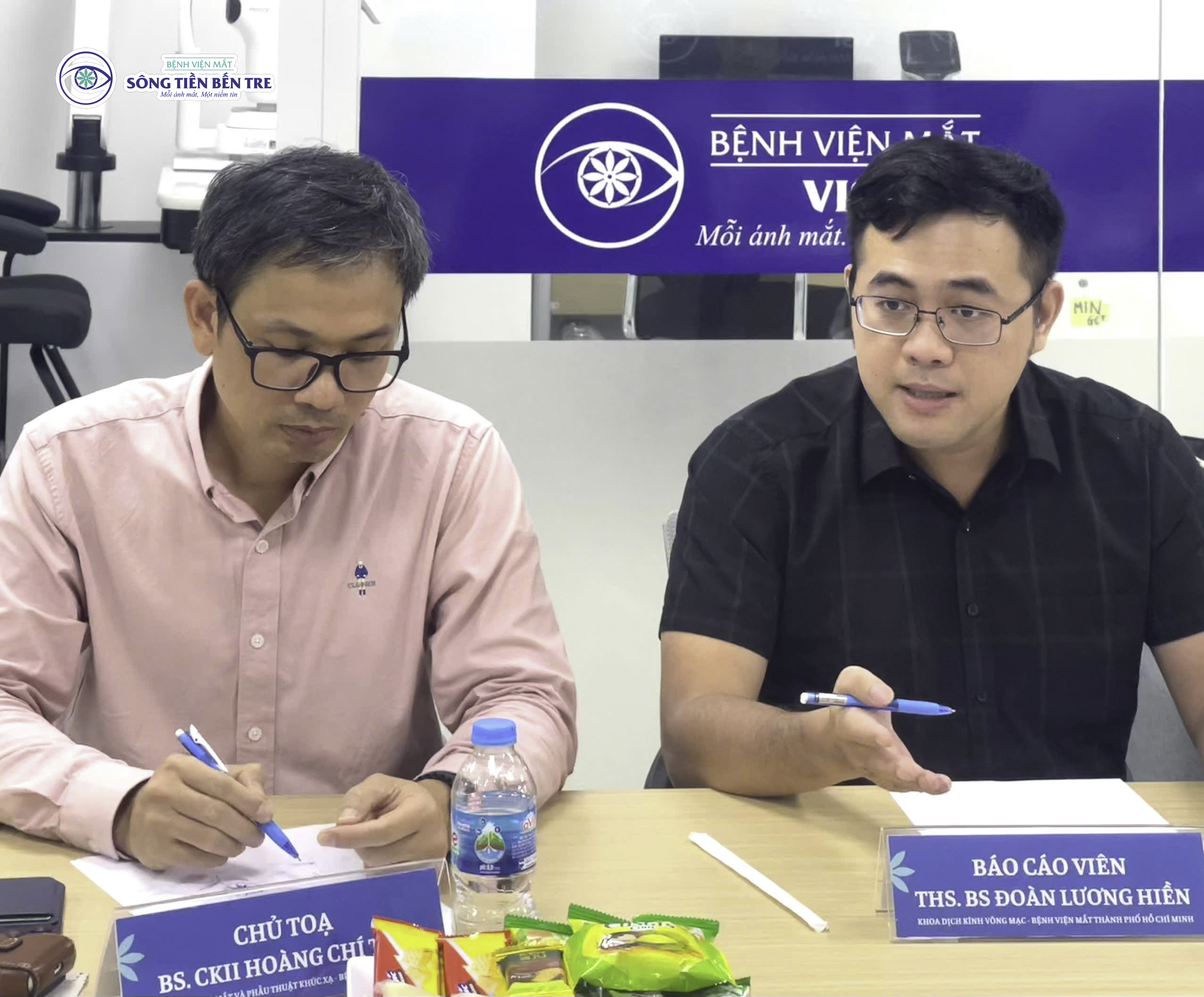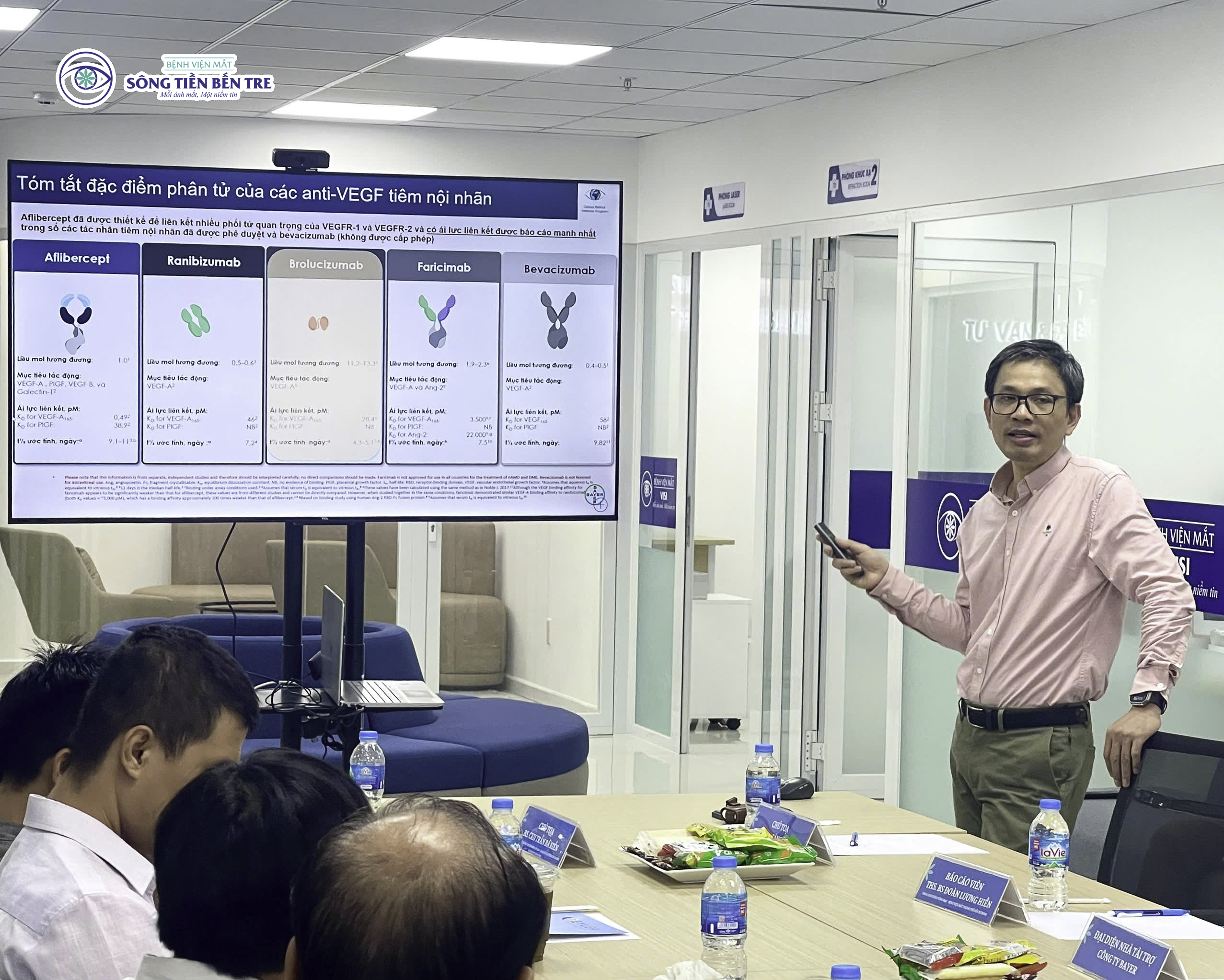 Trong buổi hội thảo, BS. CKII Hoàng Chí Tâm trình bày những nguyên tắc quan trọng trong cơ chế bệnh sinh và lựa chọn phương pháp điều trị phù hợp đối với bệnh lý tăng sinh mạch máu võng mạc. Tiếp nối nội dung, ThS. BS Đoàn Lương Hiền phân tích các trường hợp lâm sàng tiêu biểu, tập trung vào đánh giá mức độ tổn thương và tiêu chí xác định thời điểm can thiệp tối ưu.